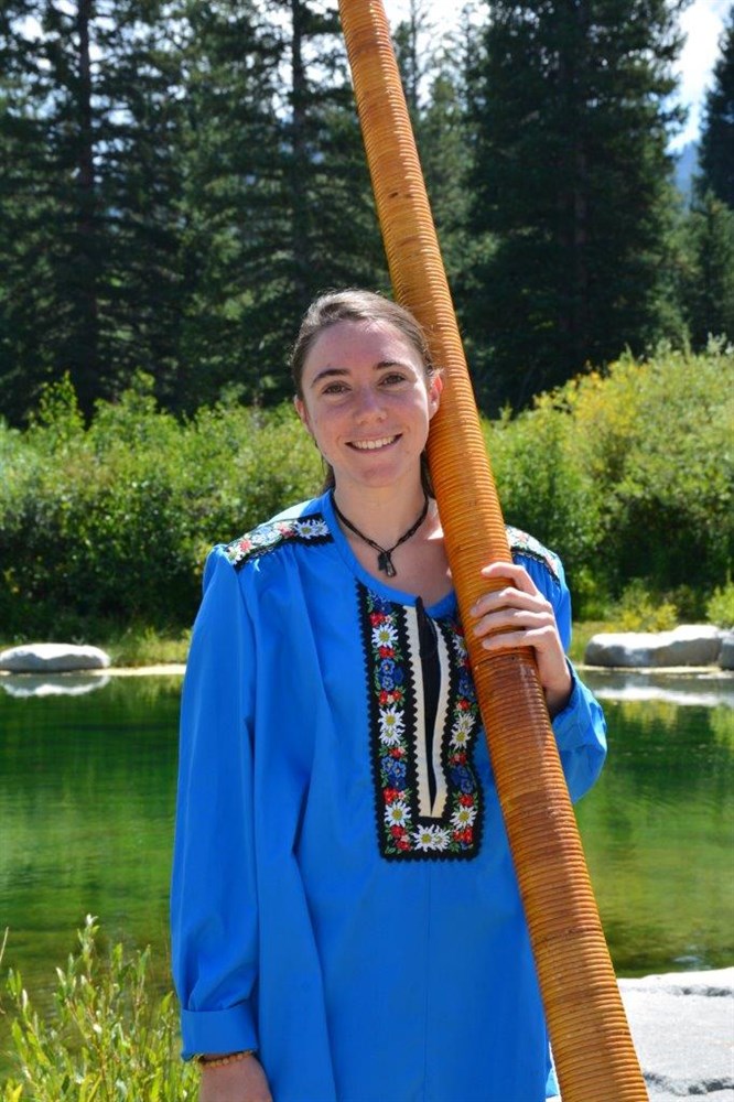Monica is a registered Music Together® teacher. She has a master's degree in horn performance from West Virginia University, and a bachelor's degree in music education and piano pedagogy certificate from Stephen F. Austin State University in Texas. During graduate school she was a teaching assistant for the West Virginia University horn studio, music history classes, and world music classes. While in Texas she taught piano and horn lessons through the Stephen F. Austin Music Prep Program, and tutored students in music history through the Academic Assistance and Resource Center. Monica has performed with a variety of ensembles, including the West Virginia University Symphony Orchestra and the West Virginia University Chamber Winds, but her passion is teaching music to others. Monica also enjoys running and playing her alphorn in the New River Gorge. (Photo provided by "North American Alphorn Retreat" www.salzburgerechoalphornretreat.com).